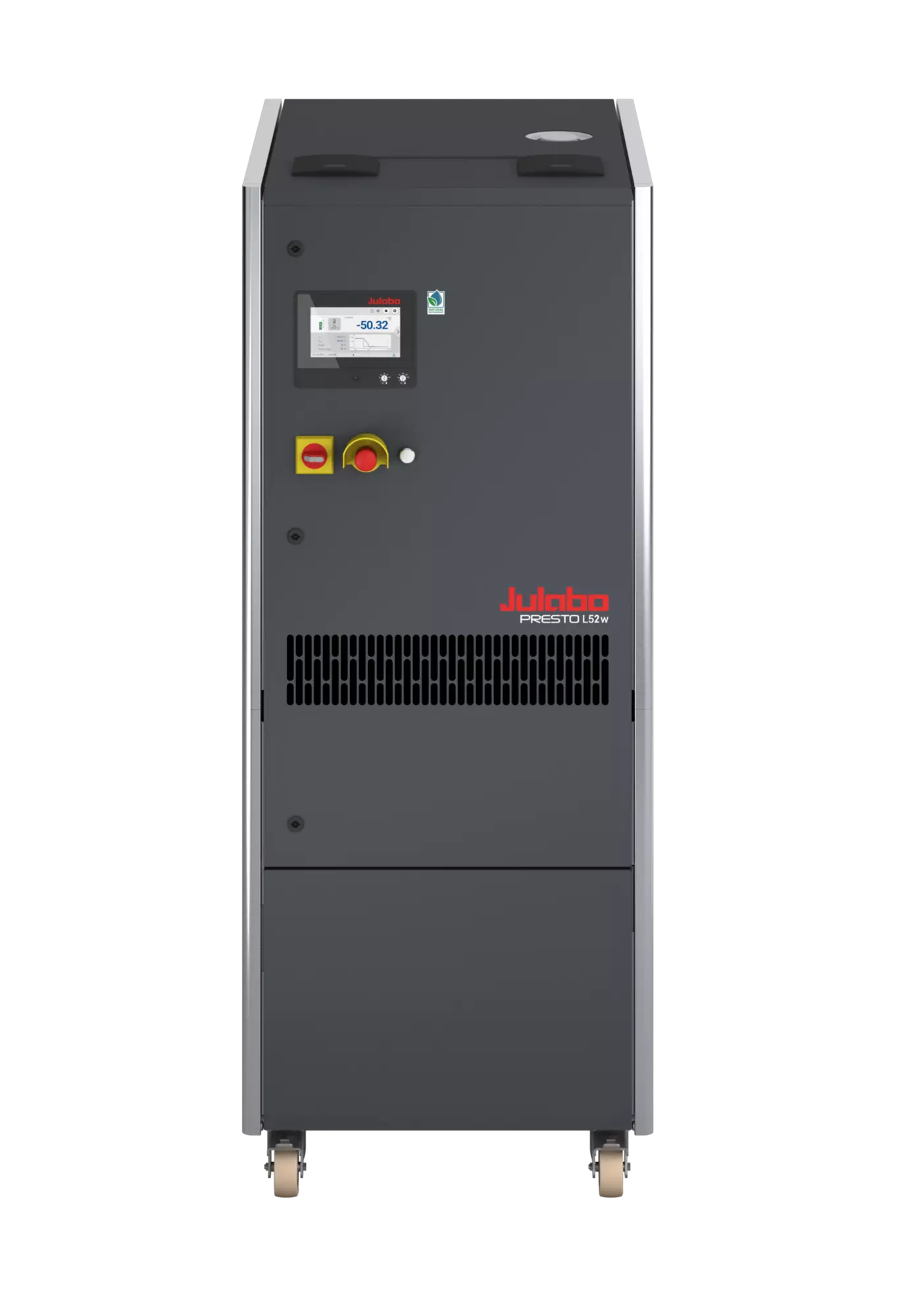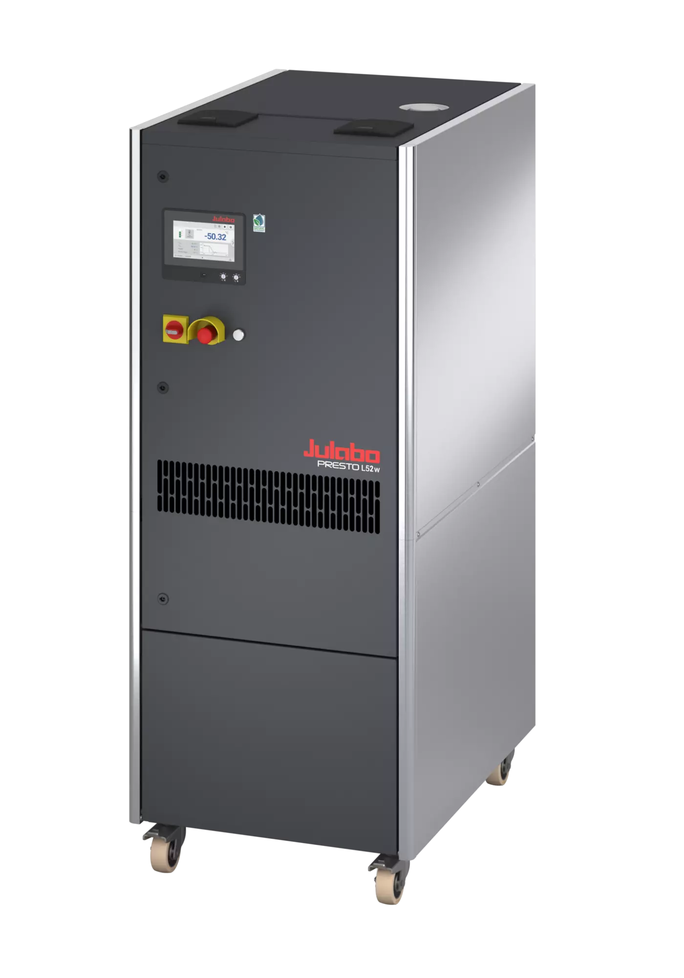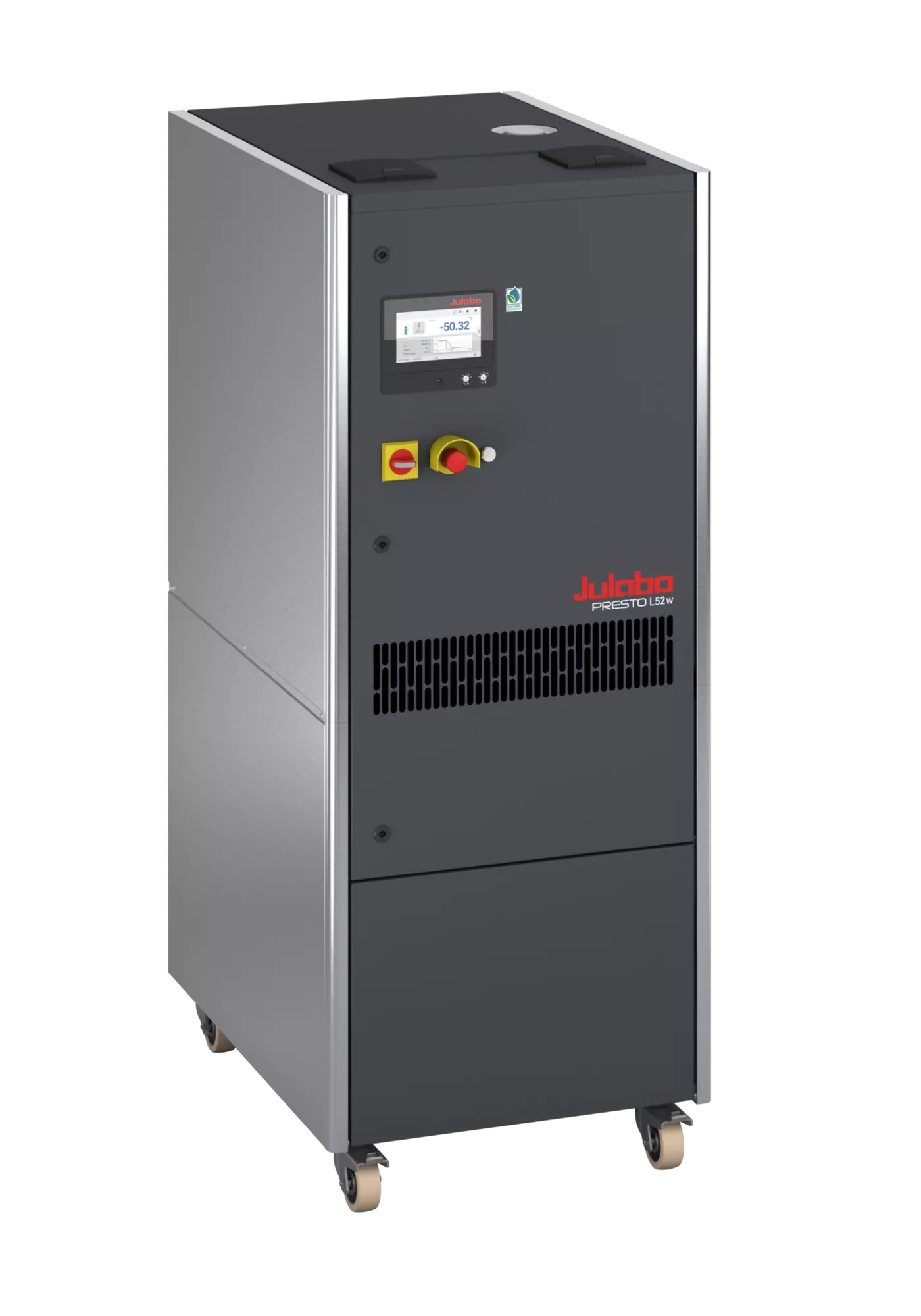 The water-cooled PRESTO L52w can temperature control applications with high power requirements very quickly and efficiently. It has a very high cooling capacity of 25kW at 20 °C, offering large power reserves for demanding external applications across the entire working temperature range. This is particularly true at low temperatures, such as those required in the automotive sector or for reactor temperature control in the pharmaceutical industry. The PRESTO L52w process system uses natural, environmentally friendly refrigerant and was also developed with a focus on energy efficiency. In many application scenarios, this leads to significant operating cost savings and thus to a faster amortization of the acquisition costs. At the same time, the lower energy consumption makes a positive contribution to climate protection. Magnetically coupled centrifugal or gear pumps allow the user to optimally adjust the pump performance to the application, even over long distances and heights, as well as in pressure-sensitive applications. Operation is user-friendly and intuitive via the large 7" touch display or via integration into comprehensive control systems.