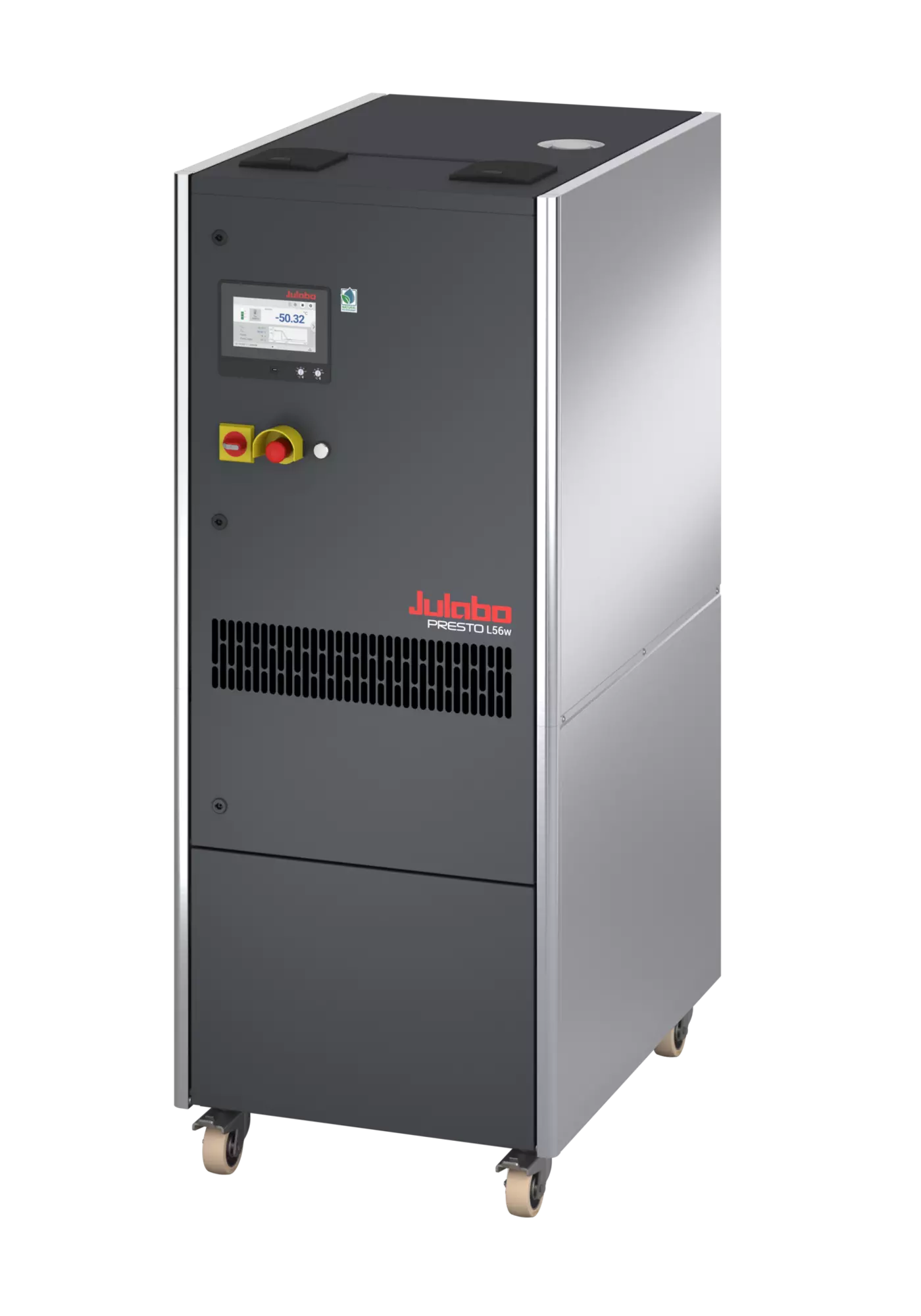 The water-cooled PRESTO L56w can temperature control applications with high power requirements very quickly and efficiently. It has a very high cooling capacity of 55kW at 20 °C, offering large power reserves for demanding external applications across the entire working temperature range. This is particularly true at low temperatures, such as those required in the automotive sector or for reactor temperature control in the pharmaceutical industry. The PRESTO L56w process system uses natural, environmentally friendly refrigerant and was also developed with a focus on energy efficiency. In many application scenarios, this leads to significant operating cost savings and thus to a faster amortization of the acquisition costs. At the same time, the lower energy consumption makes a positive contribution to climate protection. Magnetically coupled centrifugal or gear pumps allow the user to optimally adjust the pump performance to the application, even over long distances and heights, as well as in pressure-sensitive applications. Operation is user-friendly and intuitive via the large 7" touch display or via integration into comprehensive control systems.